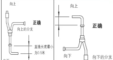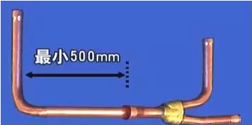6、接頭和端管的出、入口側均要求500mm以上的直管。否則容易引起冷媒偏流和冷媒流動噪音。