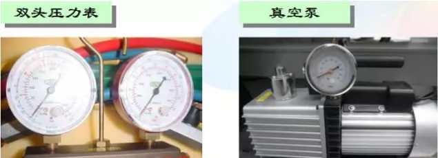 3、用充注導管將帶有調節閥的雙頭壓力表及充液罐接到氣閥和液閥的檢測接頭上。在連接之前,先放出一部分制冷劑,將充注導管內的空氣排出。